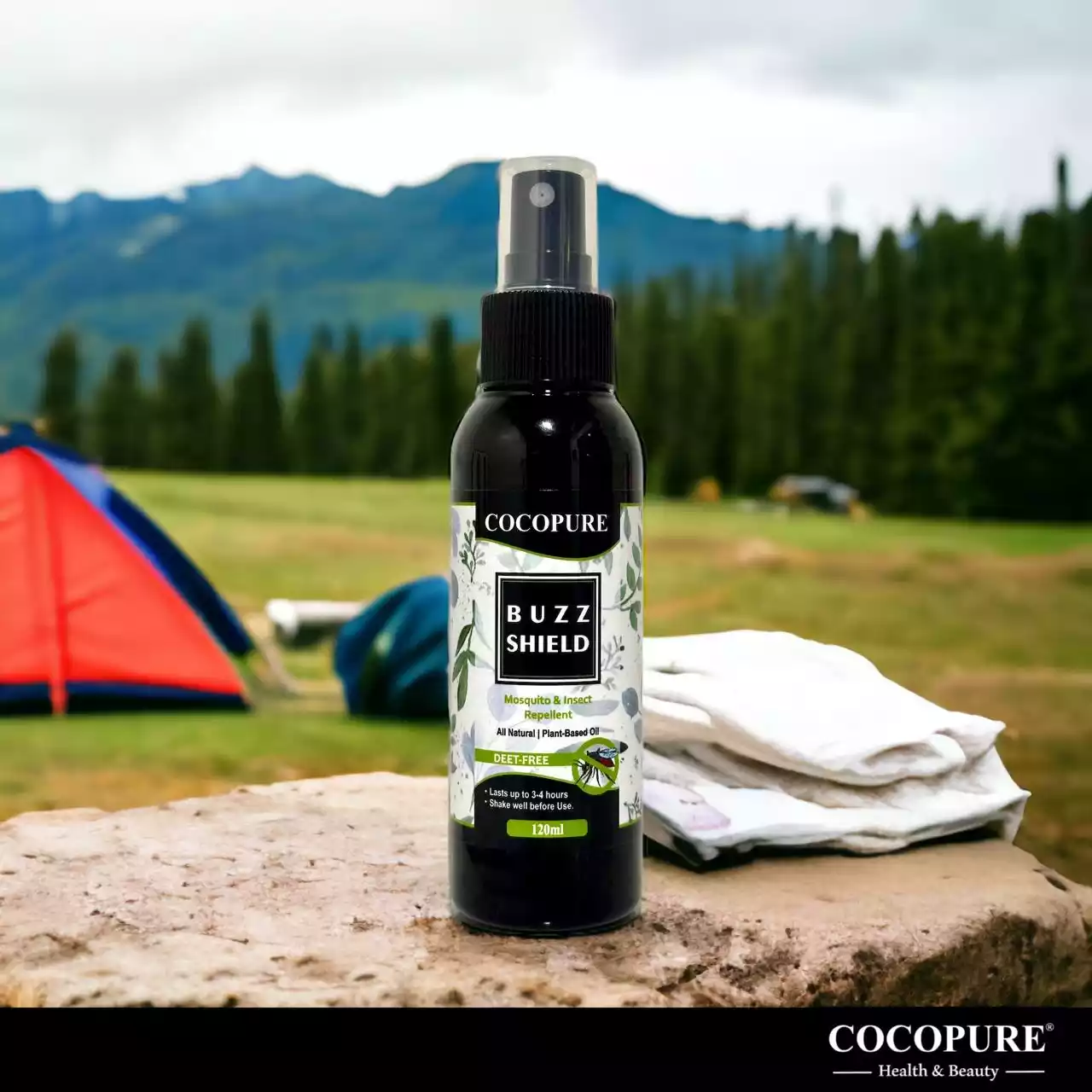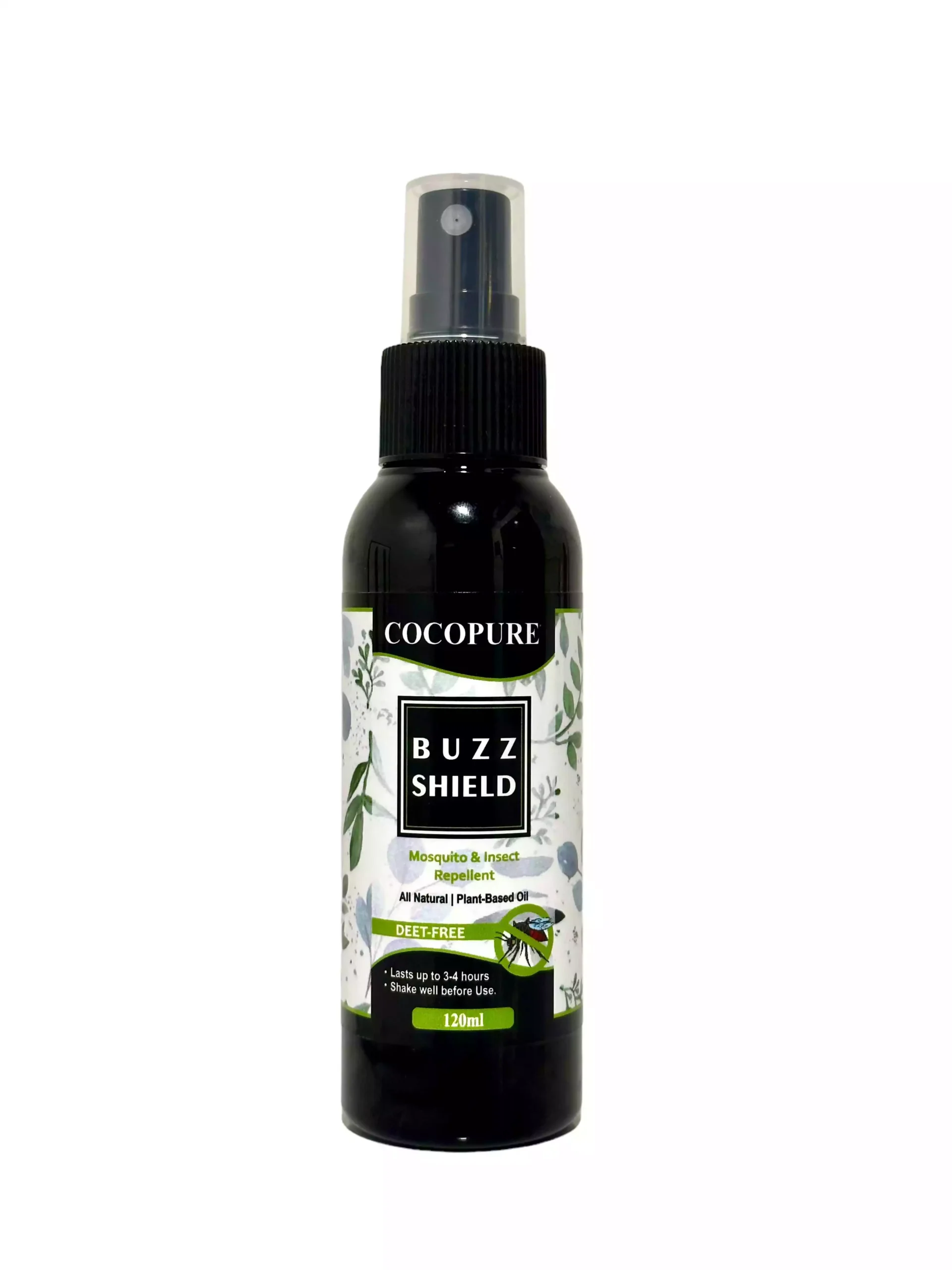 COCOPURE ‘BUZZ SHIELD’ Mosquito & Insect Repellent is an All Natural & 100% Plant-based product. It’s made from a blend of Skin Nourishing ingredients & essential oils that not only repel mosquitoes but also boosts your mood, relaxes you & smell good. BUZZ SHIELD  is a chemical-free mosquito & insect repellent that is safe for you and your family.